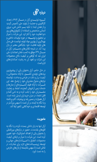 آرال همواره در مسير رشد و پيشرفت گام برداشته وبا نگاه به آینده، بر آن است تا سهمى بزرگتر در توسعه ی اقتصادى و خودكفايى كشور ايفا كند.